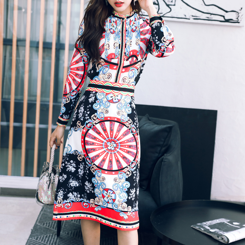 名媛氣質秋裝2018新款女裝氣質兩件套長袖襯衫印花裙子長裙套裝潮