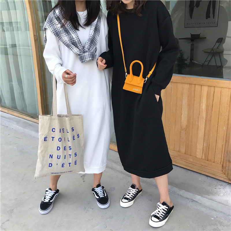 / 慵懶風加絨衛衣女秋冬裝2018新款韓版中長款寬松休閑外搭上衣外套