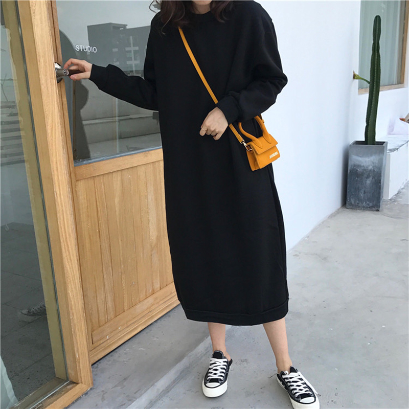 慵懶風加絨衛衣女秋冬裝2018新款韓版中長款寬松休閑外搭上衣外套