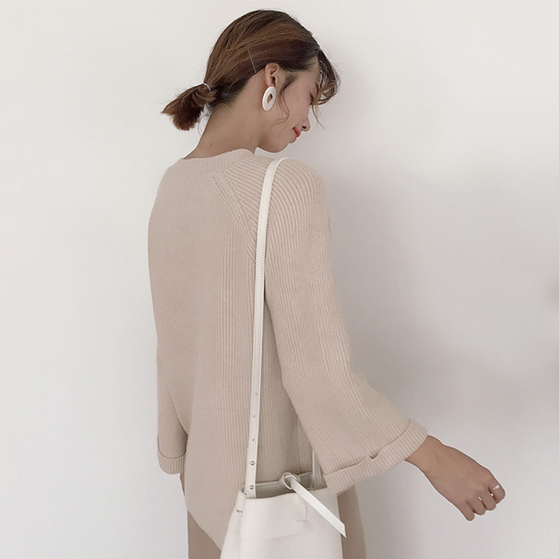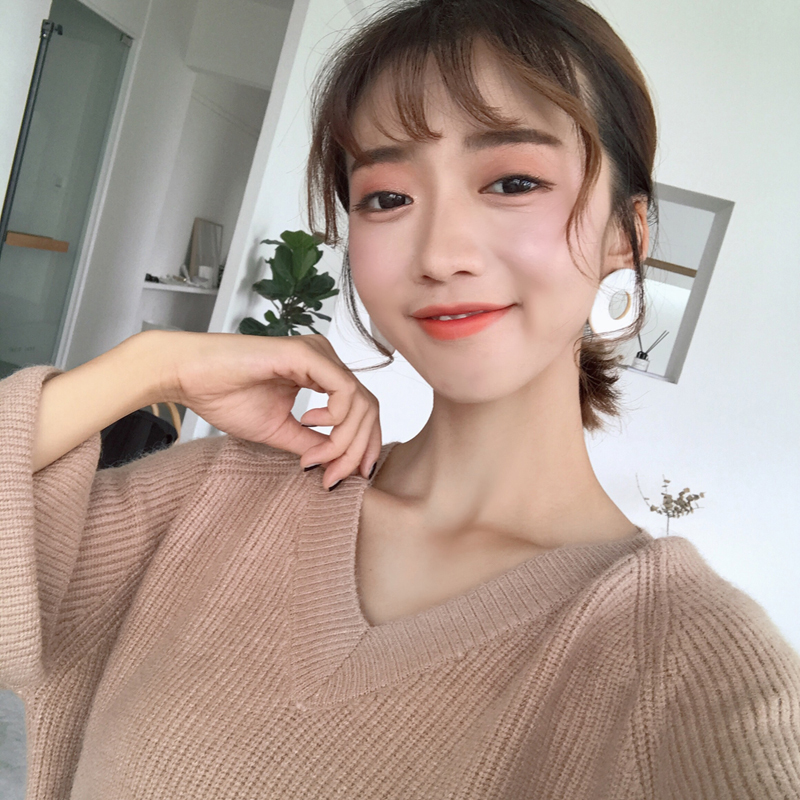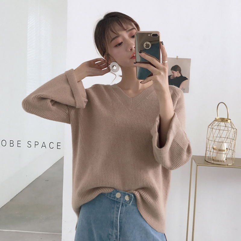 慵懶風針織衫秋裝女2018新款韓版V領寬松毛衣學生喇叭長袖上衣潮