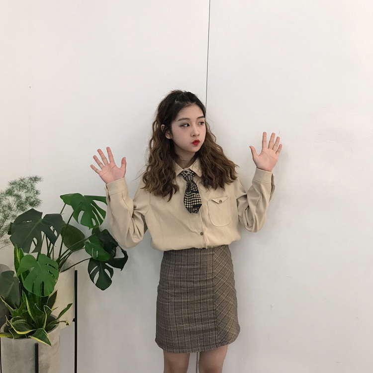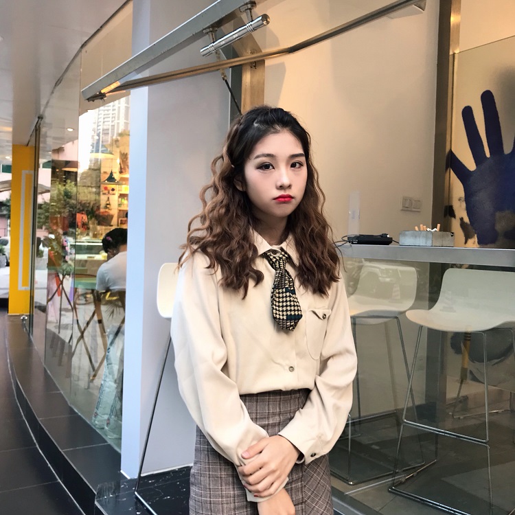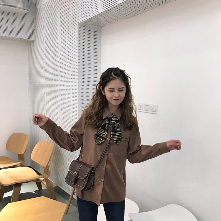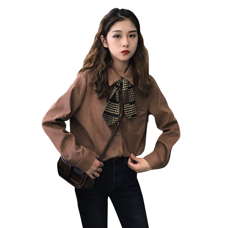 / 秋季女裝韓版新款翻領絲帶領結百搭打底襯衫寬松休閑長袖襯衣上衣