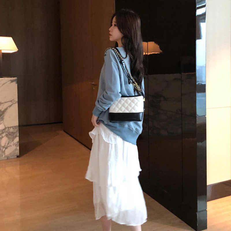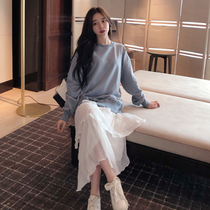 慵懶風套頭長袖衛衣外套秋裝女新款氣質顯瘦高腰a字半身裙兩件套