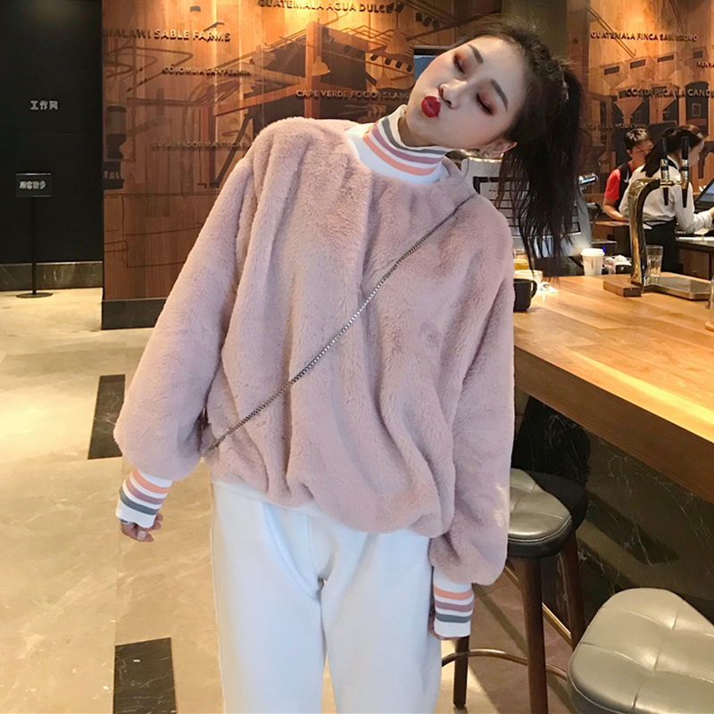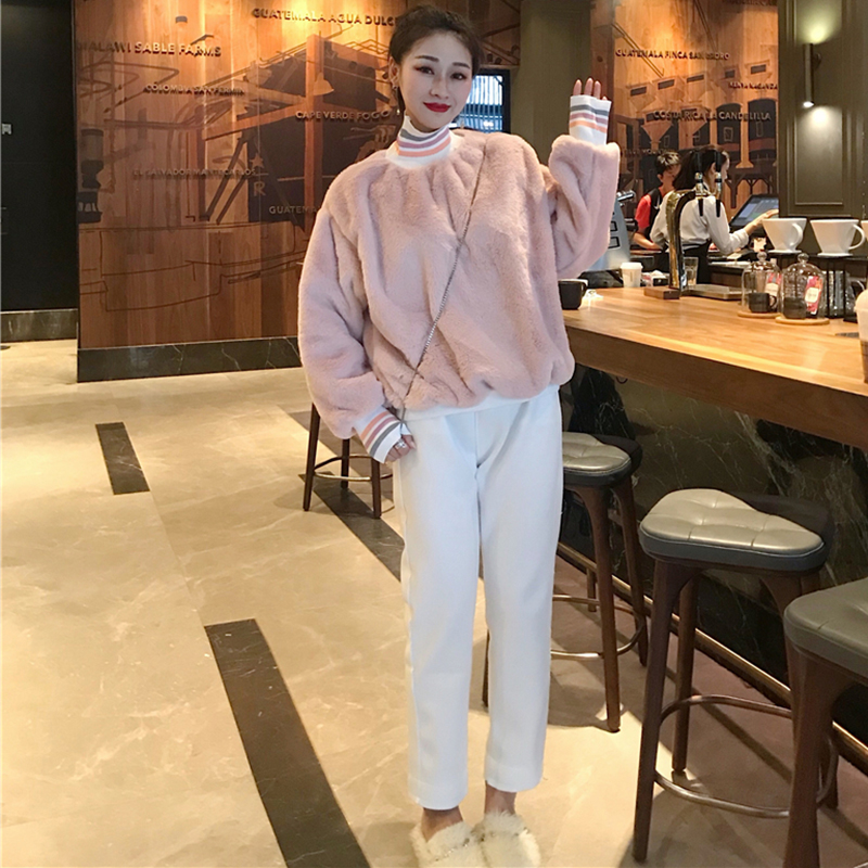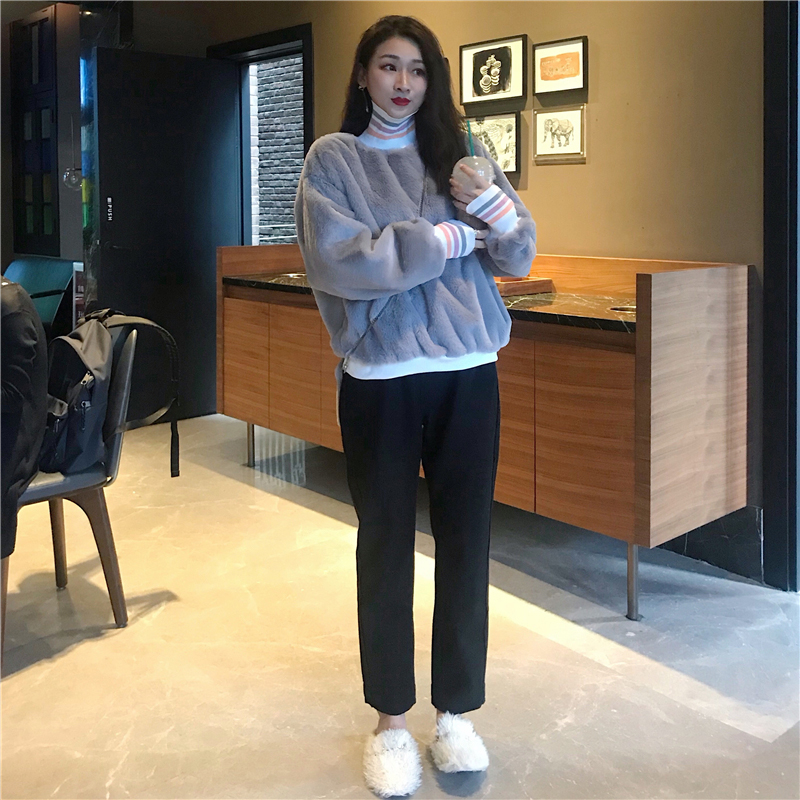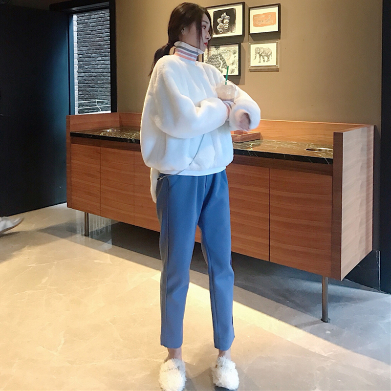 御姐套裝女秋冬新款高領寬松長袖衛衣外套高腰顯瘦呢子直筒休閑褲