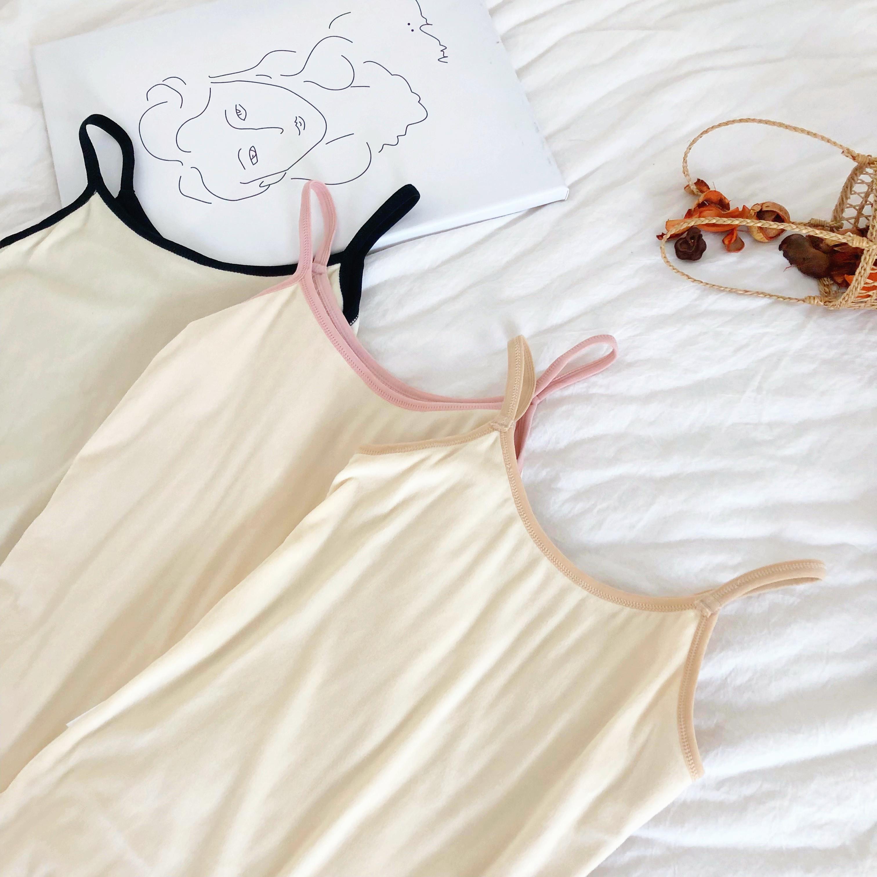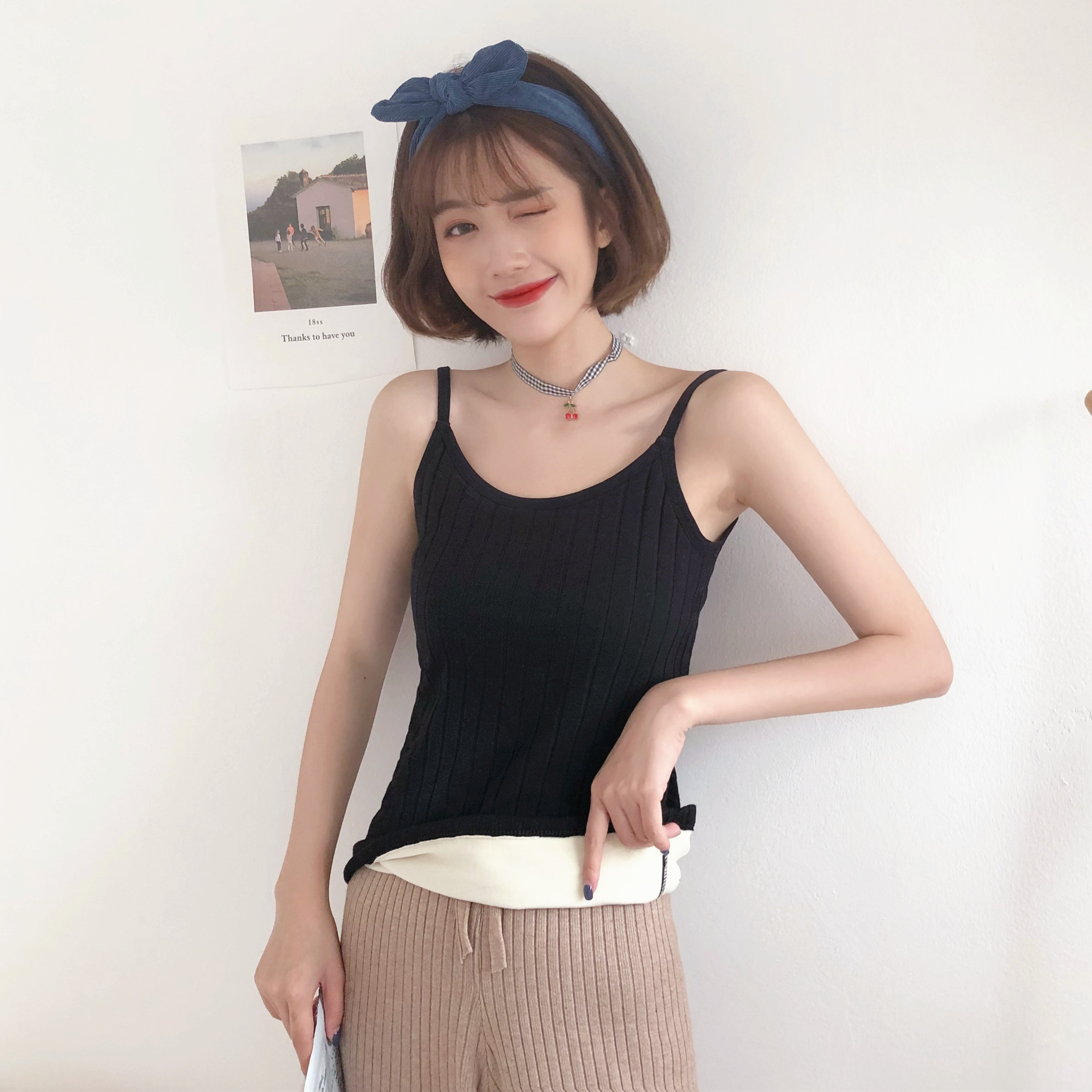 秋冬韓版純色修身顯瘦保暖吊帶背心學生加厚加絨打底衫內衣上衣女