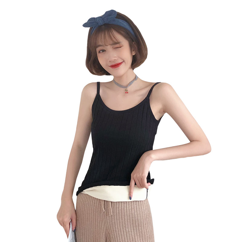 / 秋冬韓版純色修身顯瘦保暖吊帶背心學生加厚加絨打底衫內衣上衣女