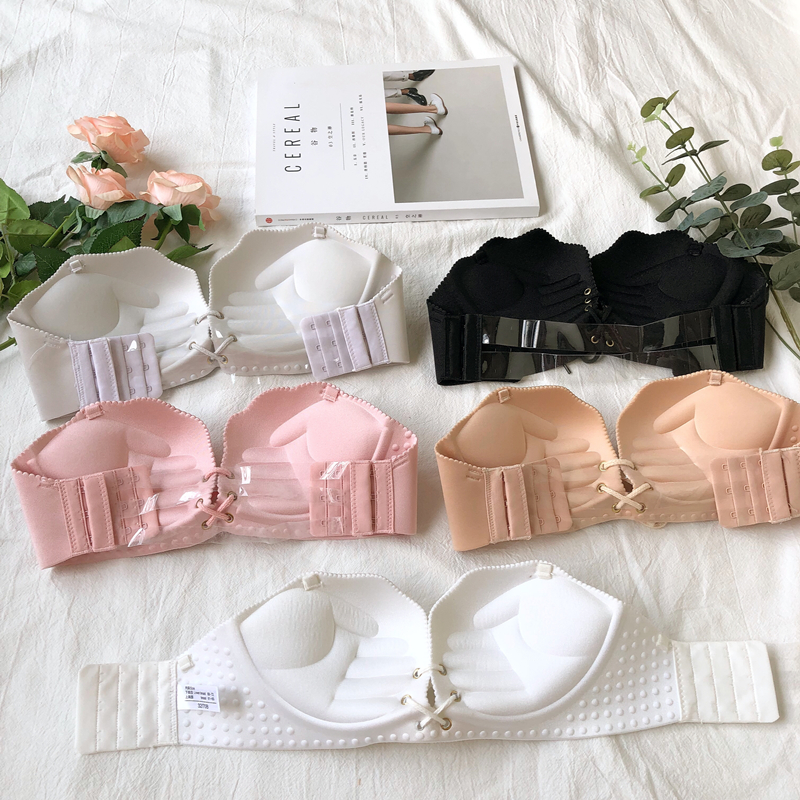 女夏2018新款無肩帶內衣女聚攏防滑上托小胸四角杯無鋼圈隱形文胸
