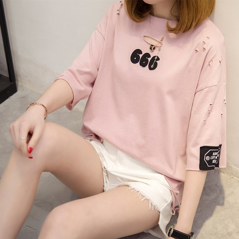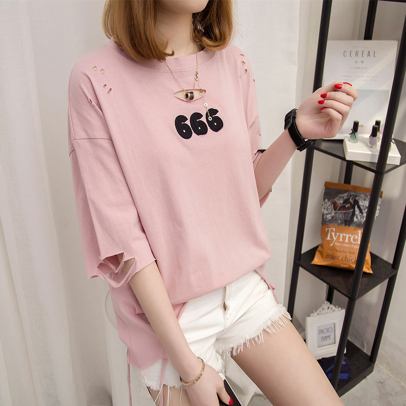 / 短袖上衣女夏新款白色t恤女中長袖韓版寬松半袖打底體恤百搭