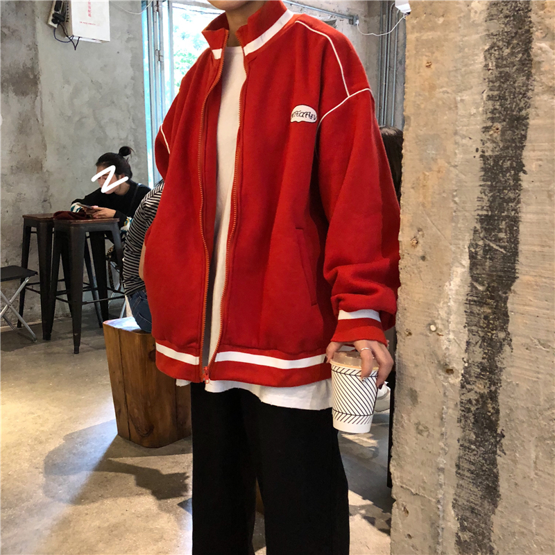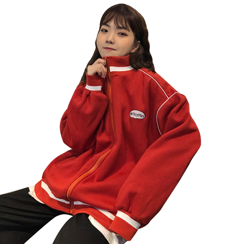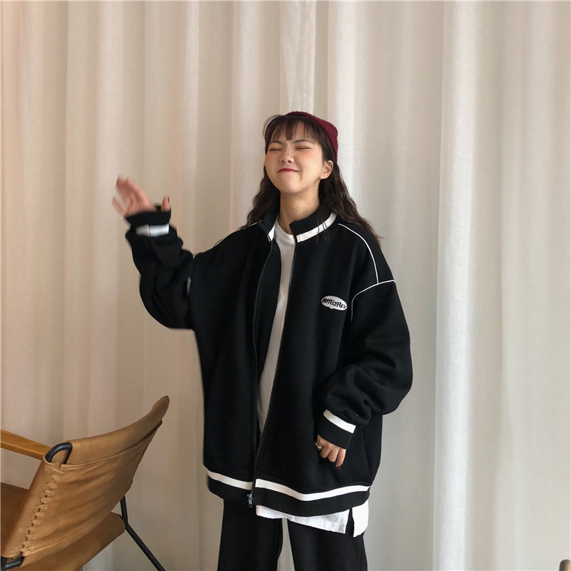 / 秋冬韓版中長款學院風慵懶風寬松加絨加厚拉鏈衛衣開衫上衣外套女