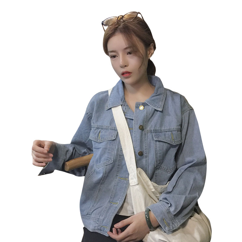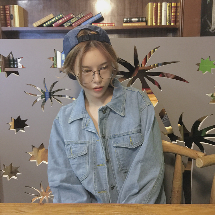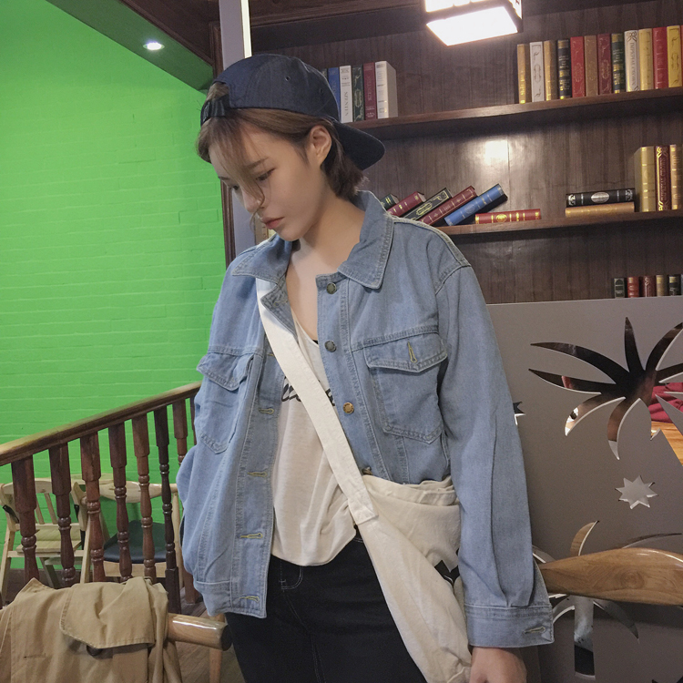 / 秋裝女裝韓版復古做舊淺色牛仔外套BF風寬松工裝休閑夾克開衫上衣