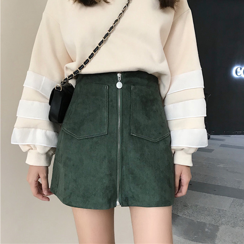 裙子女秋裝2018新款時尚麂皮絨半身裙氣質高腰A字裙拉鏈包臀短裙