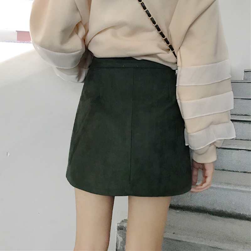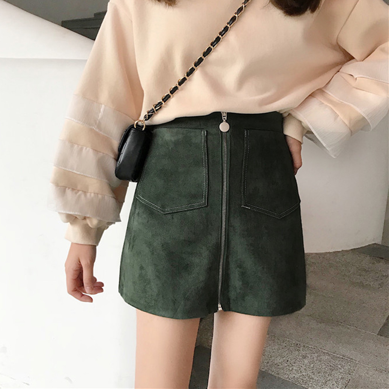 / 裙子女秋裝2018新款時尚麂皮絨半身裙氣質高腰A字裙拉鏈包臀短裙