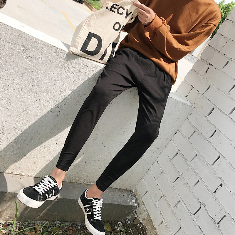 / 秋季褲子男士修身韓版古著vintage休閑褲潮流運動小腳褲男褲束腳