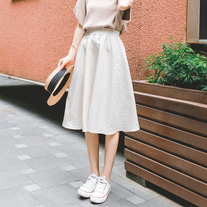 / 夏季新款格子百褶裙中長款女學生高腰百搭韓版a字半身長裙子
