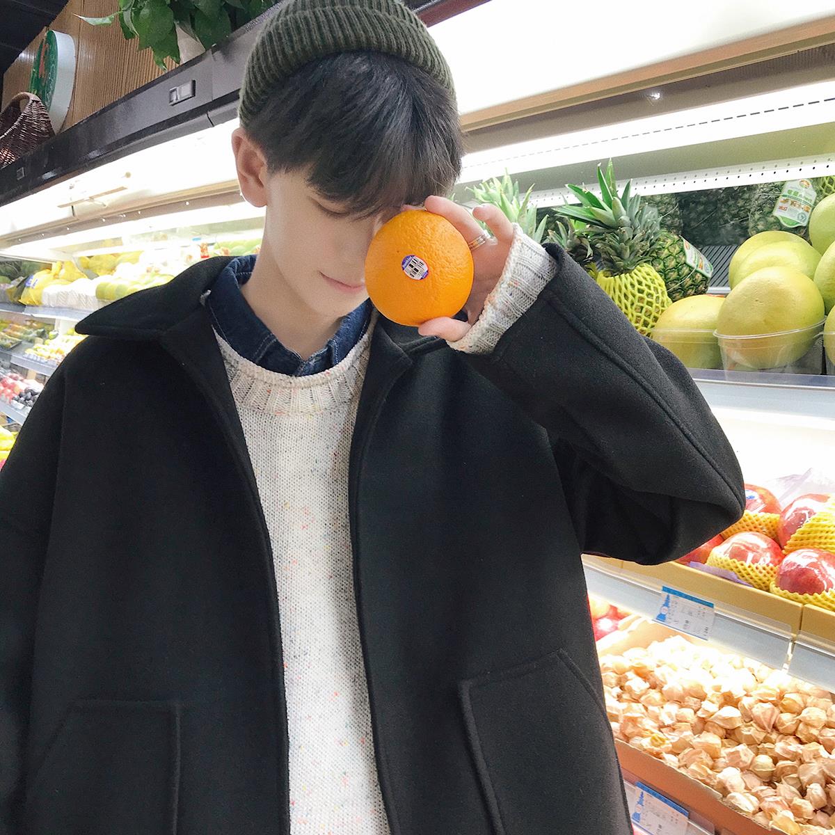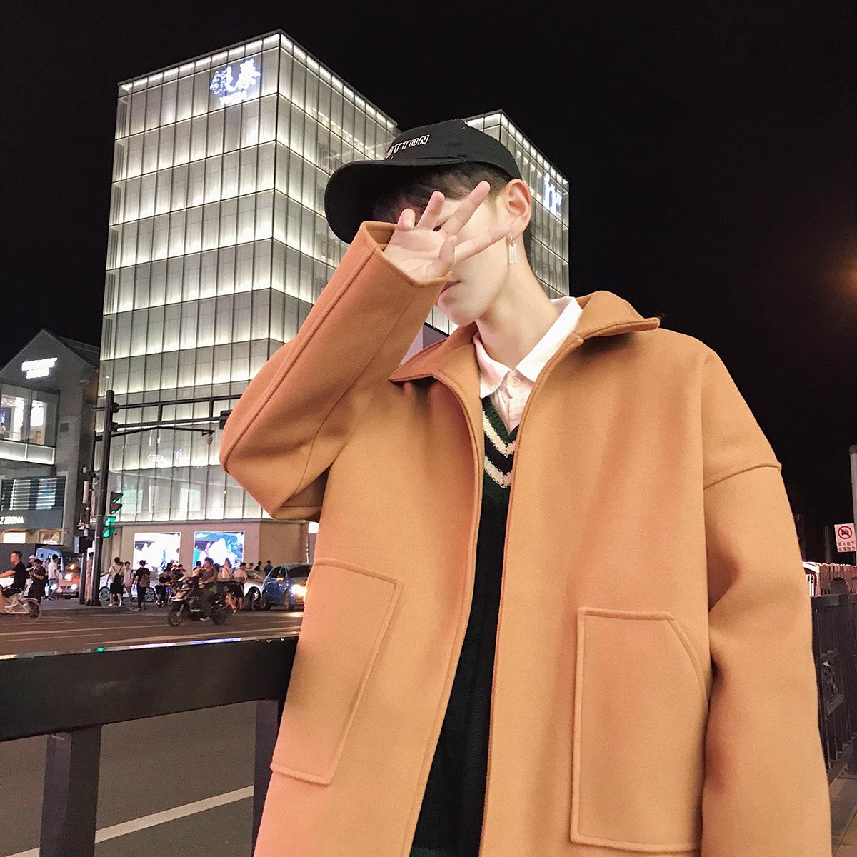 / 文藝男女店毛呢大衣中長款外套男春秋風衣ins超火的上衣秋裝情侶