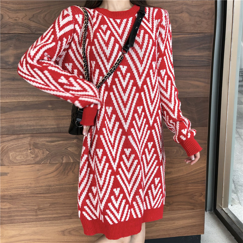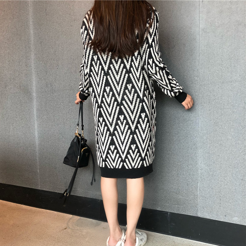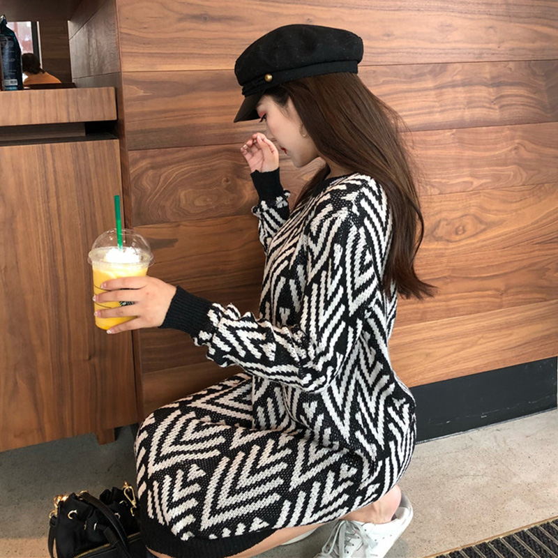 / 時尚撞色毛衣裙秋裝女2018新款法式少女茶歇裙圓領寬松長袖連衣裙