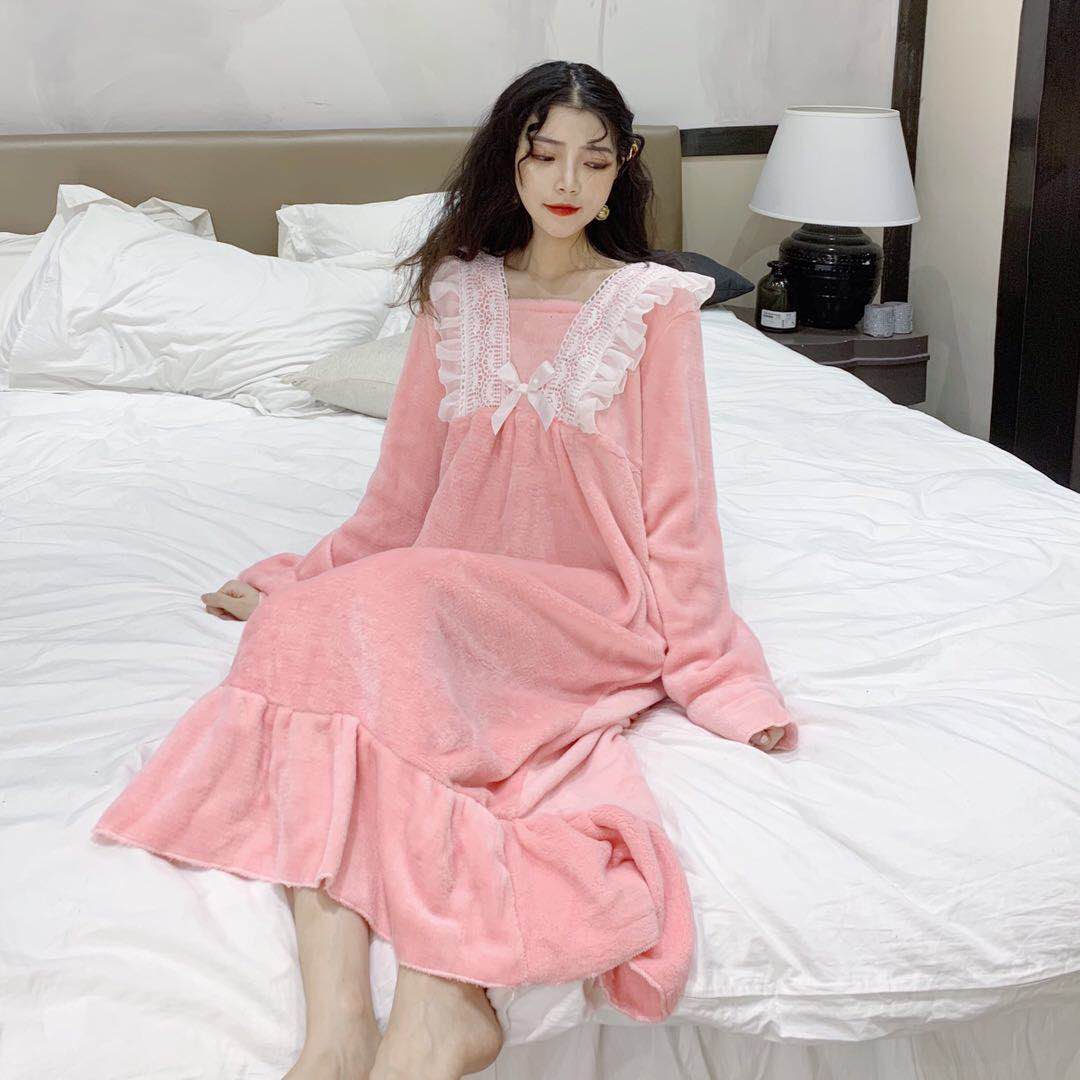 / 秋冬新款甜美舒適韓版百搭保暖睡衣公主風荷葉邊睡裙家居服連衣裙