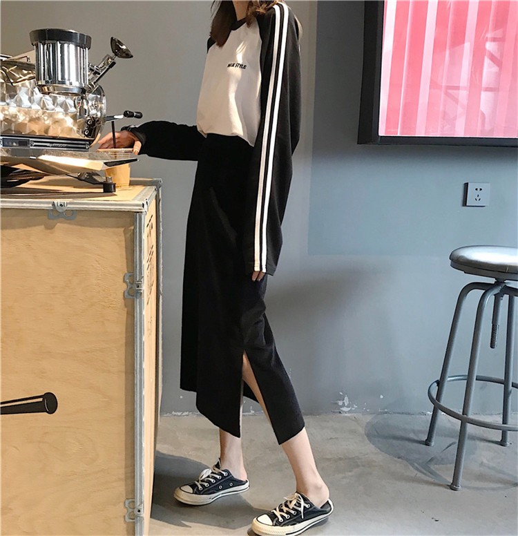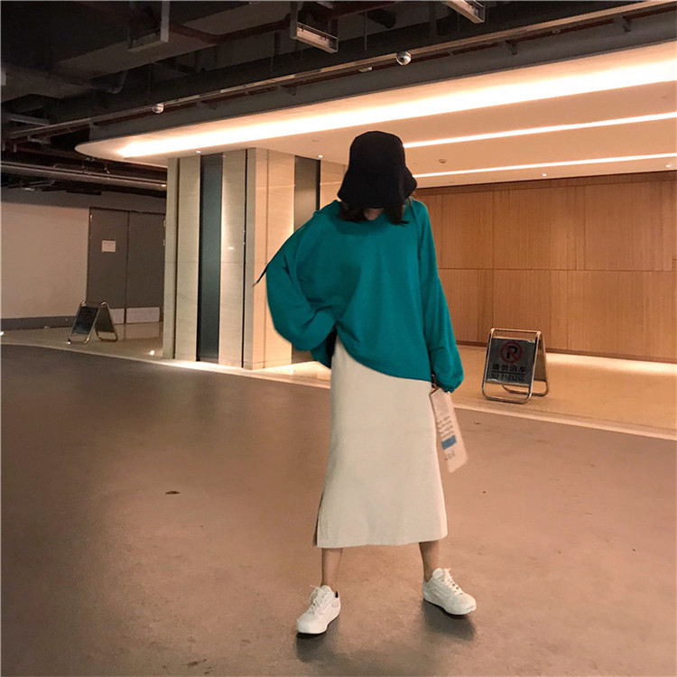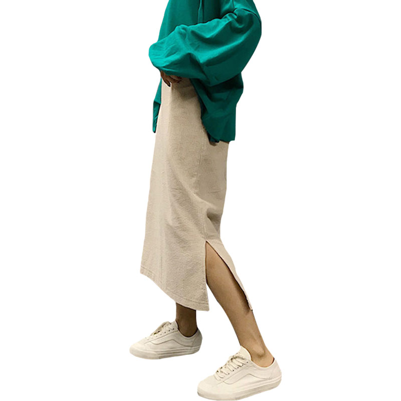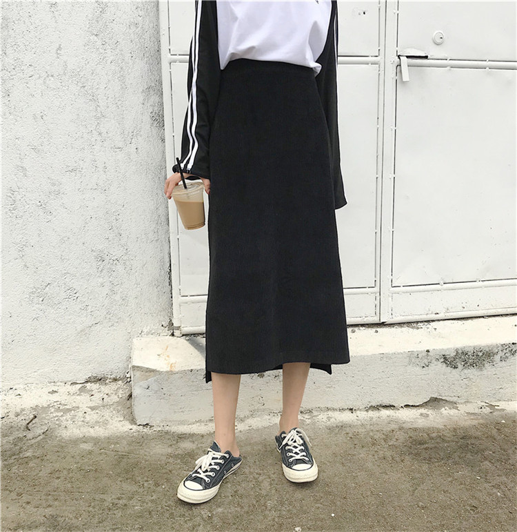 / 秋季女裝韓版顯瘦開叉高腰燈芯絨包裙臀中長款學生A字半身裙長裙