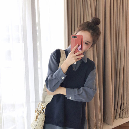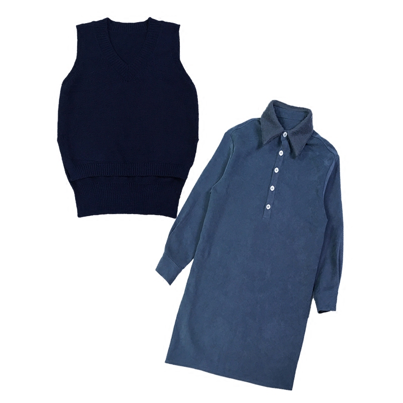 1308深藍毛衣馬甲+藍色連衣裙