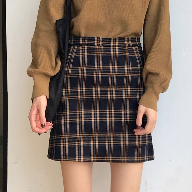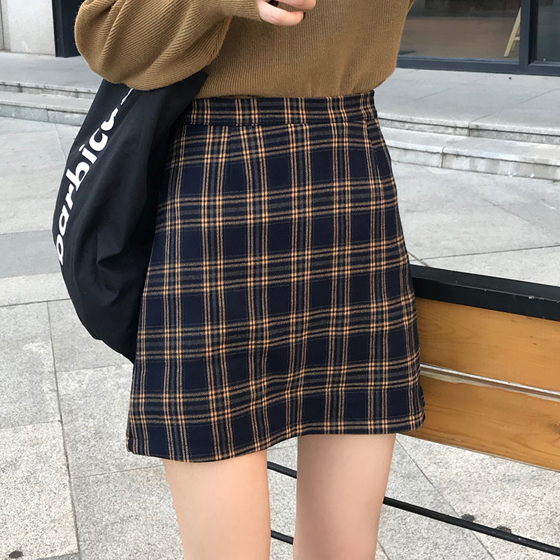 / 學院風格子半身裙女高腰包臀短裙2018秋裝新款顯瘦黑色a字一步裙