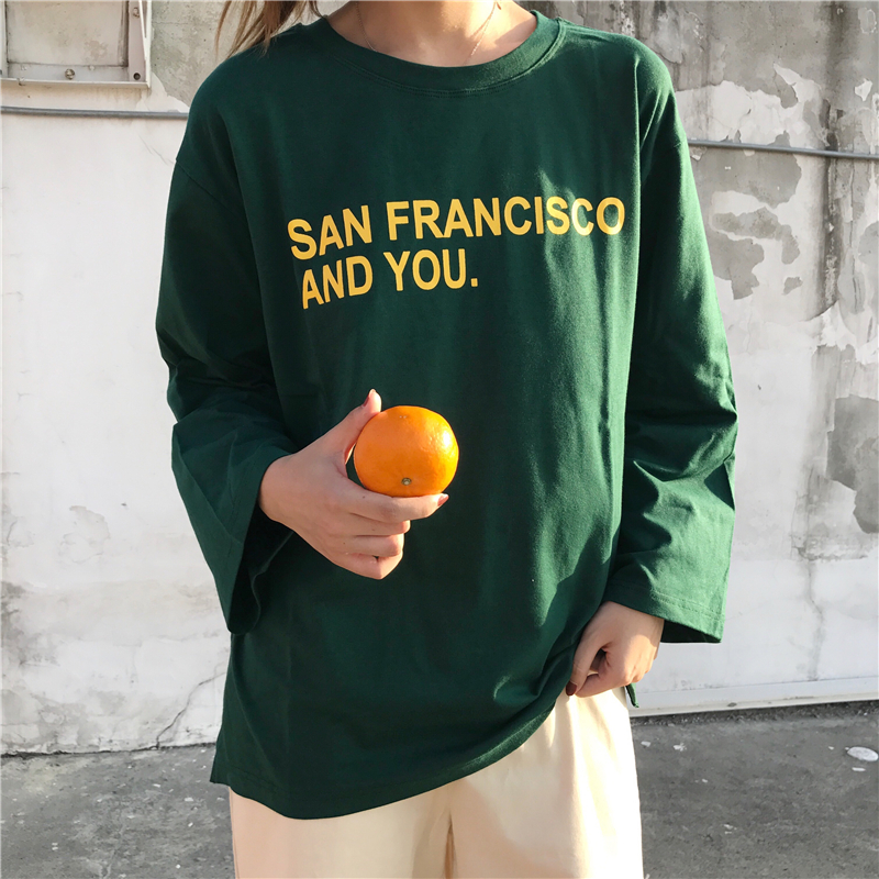 秋裝女裝新款韓版小清新簡約字母寬松百搭長袖T恤上衣學生打底衫