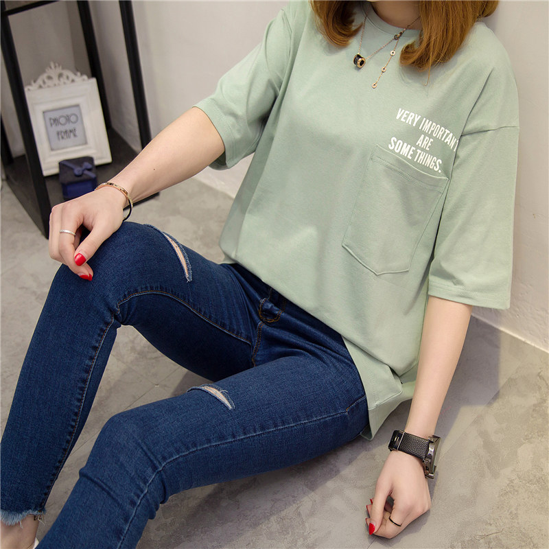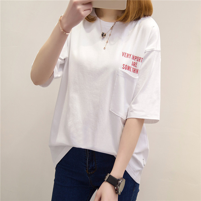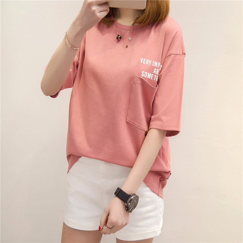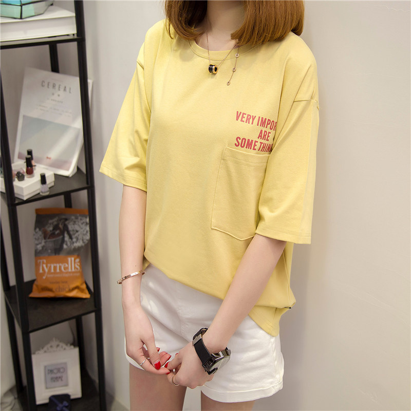 / 女裝春裝新款韓版潮短袖t恤女寬松純色上衣學生體恤夏打底衫