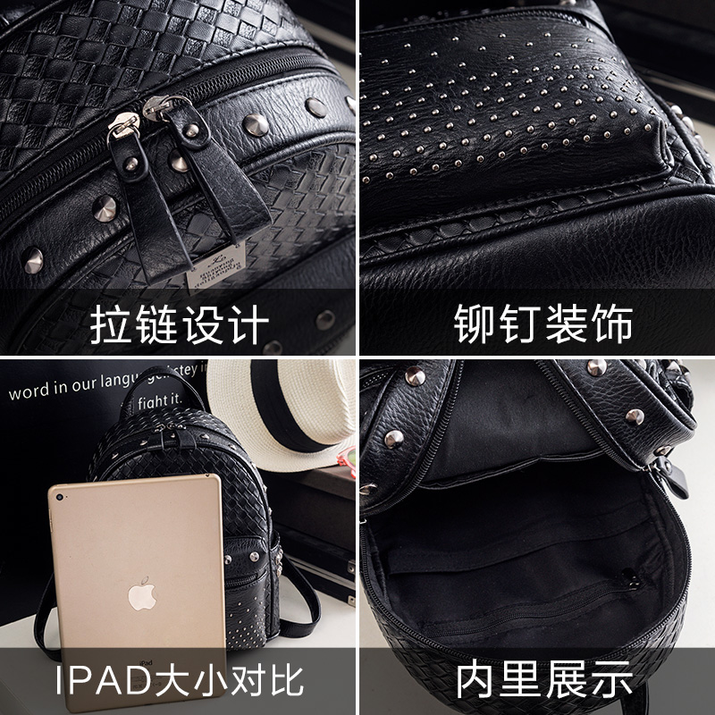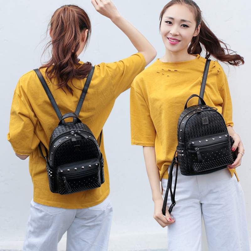 鉚釘雙肩包女韓版pu時尚個性百搭編織迷你女士包包新款潮背包