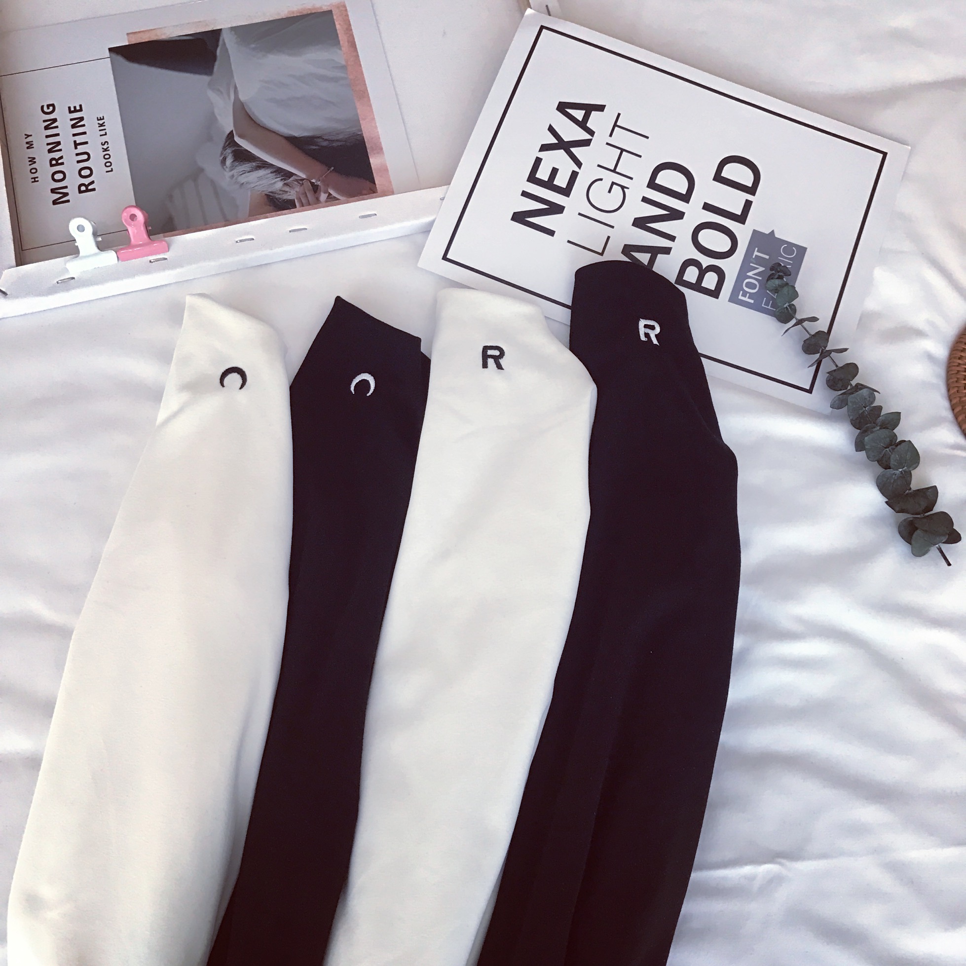 / 冬裝上衣女慵懶長袖t袖女月亮刺繡打底字母半高領加薄絨百搭打底