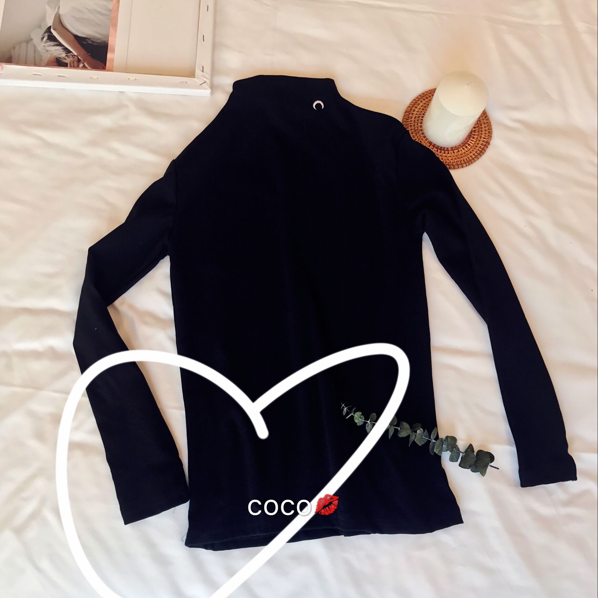 初秋新款女上衣韓版時尚chic基礎款百搭顯瘦高領純色打底衫t恤女