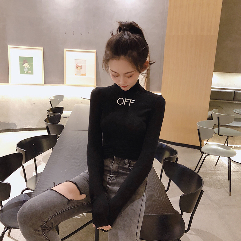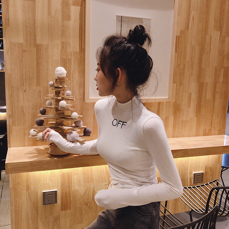 新款韓版復古chic顯瘦百搭上衣女修身長袖小高領套頭T恤打底衫潮