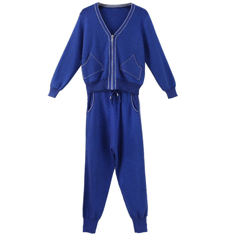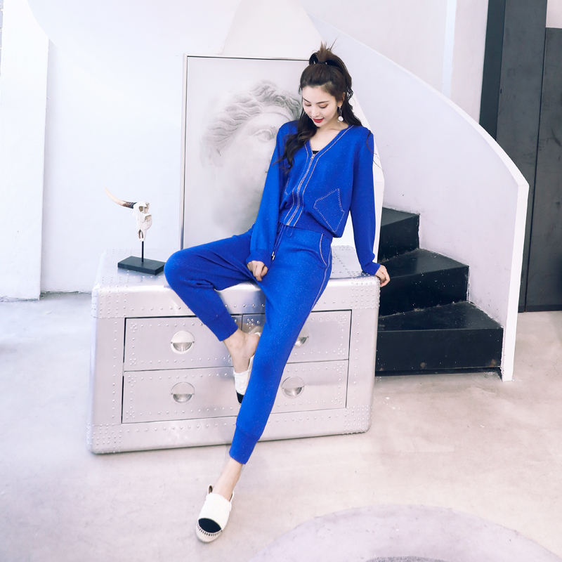 2018春秋裝新款韓版針織開衫兩件套小腳褲休閑褲時尚運動氣質套裝