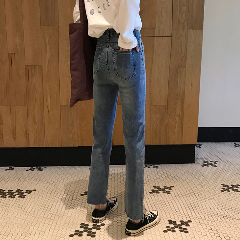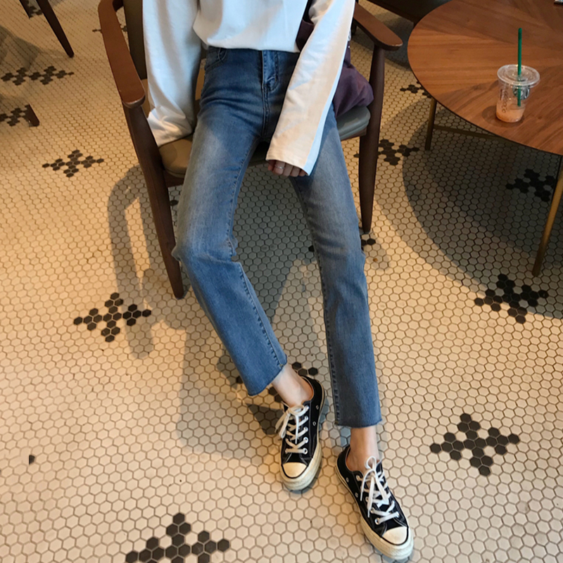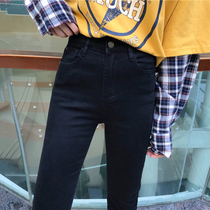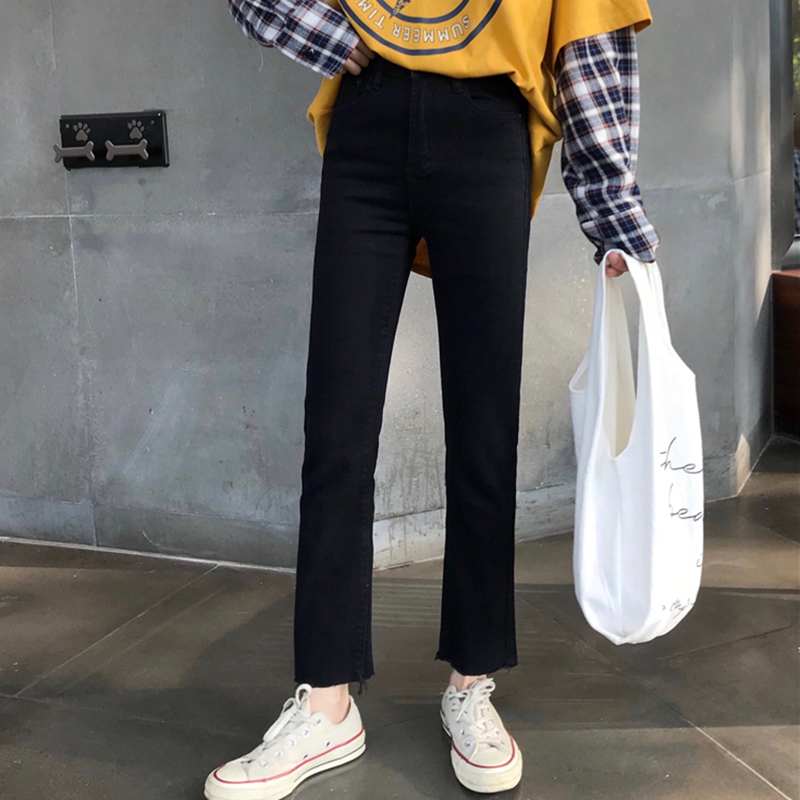 / 復古高腰彈力牛仔褲秋裝女2018新款時尚修身直筒褲學生九分黑褲子