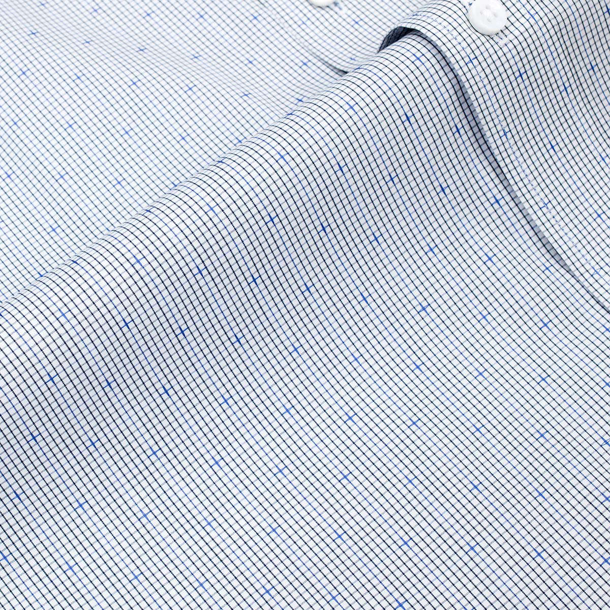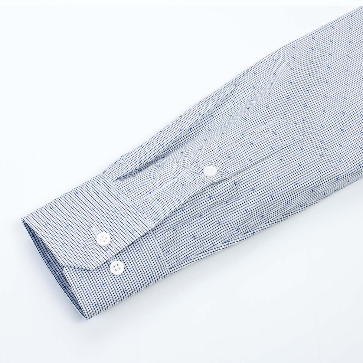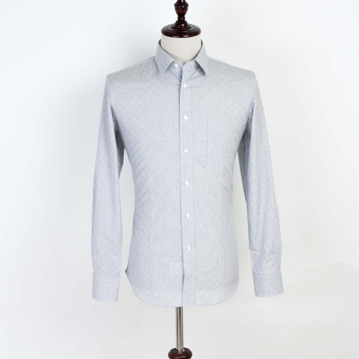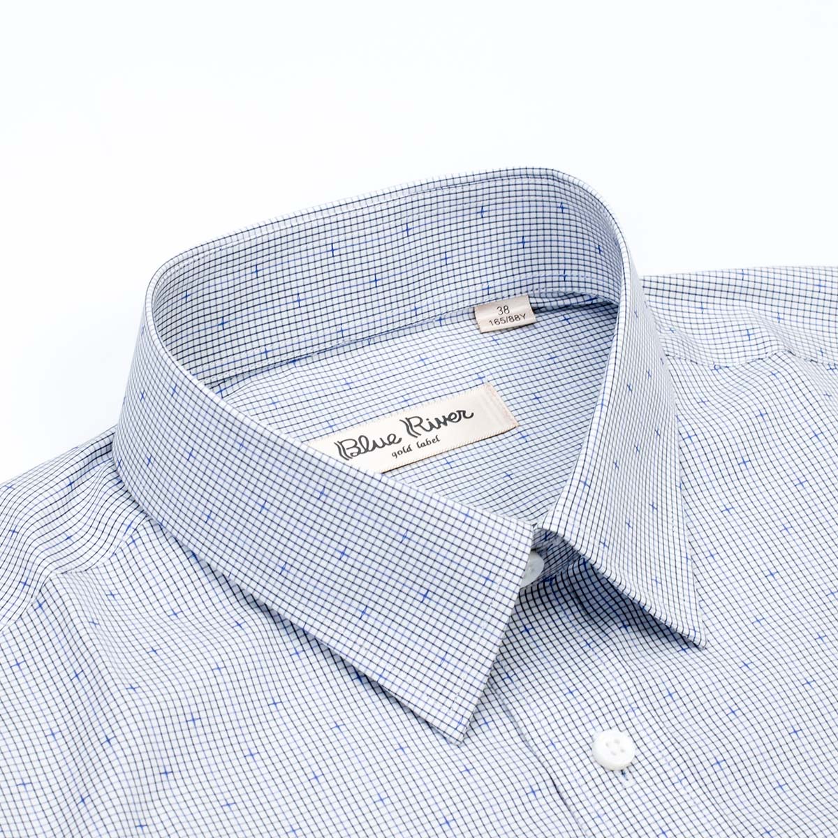 / 藍河襯衫 藍色密碼細格子男士長袖商務正裝襯衫高支棉尖領襯衣