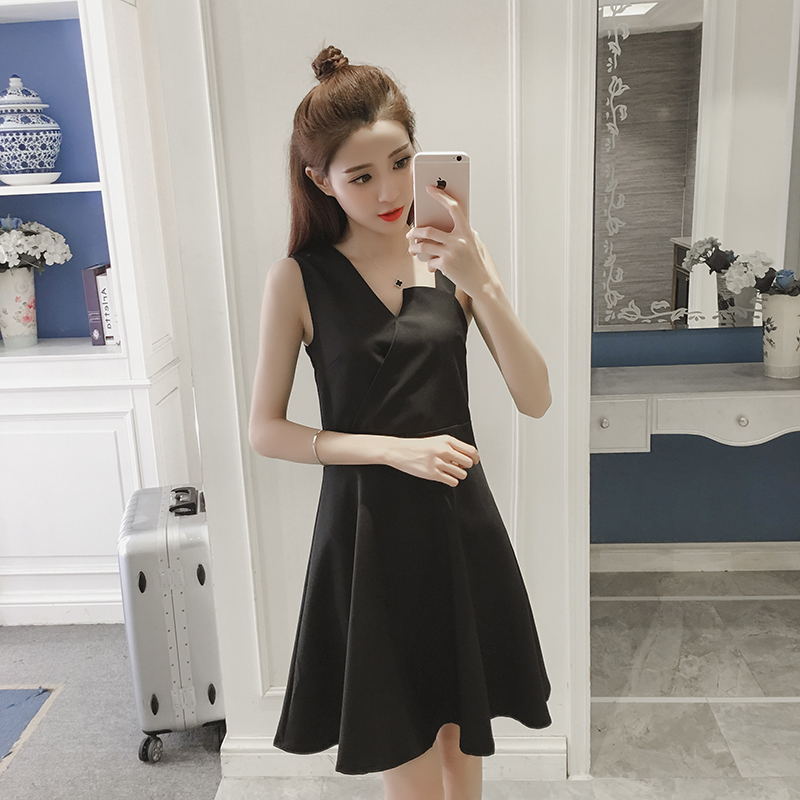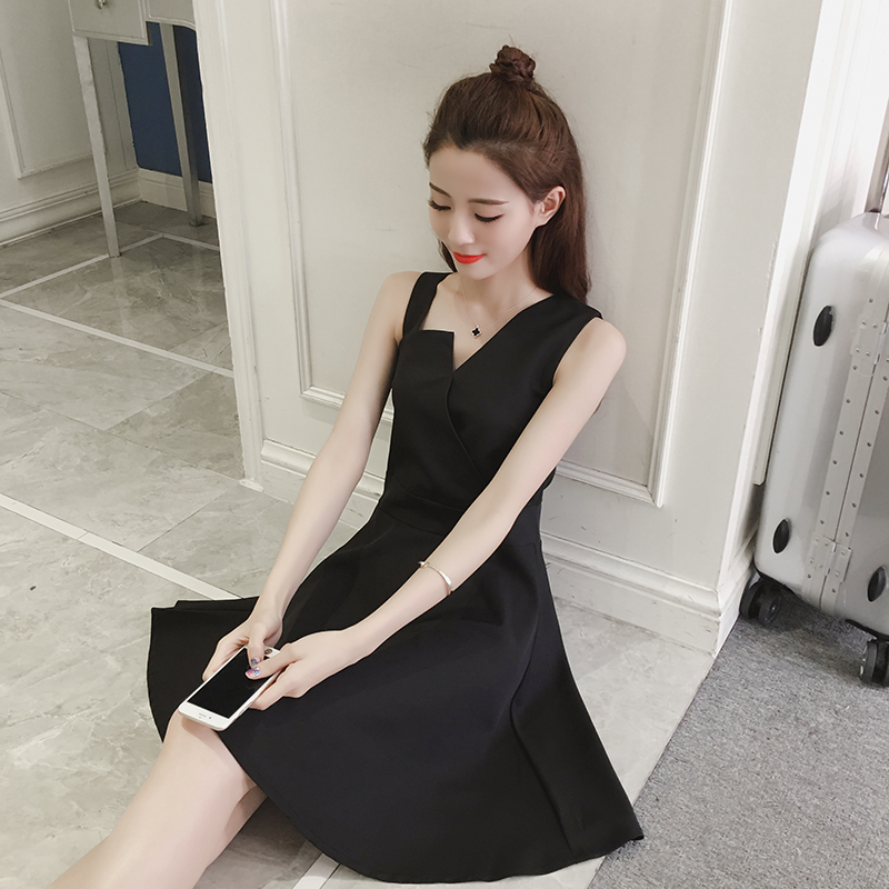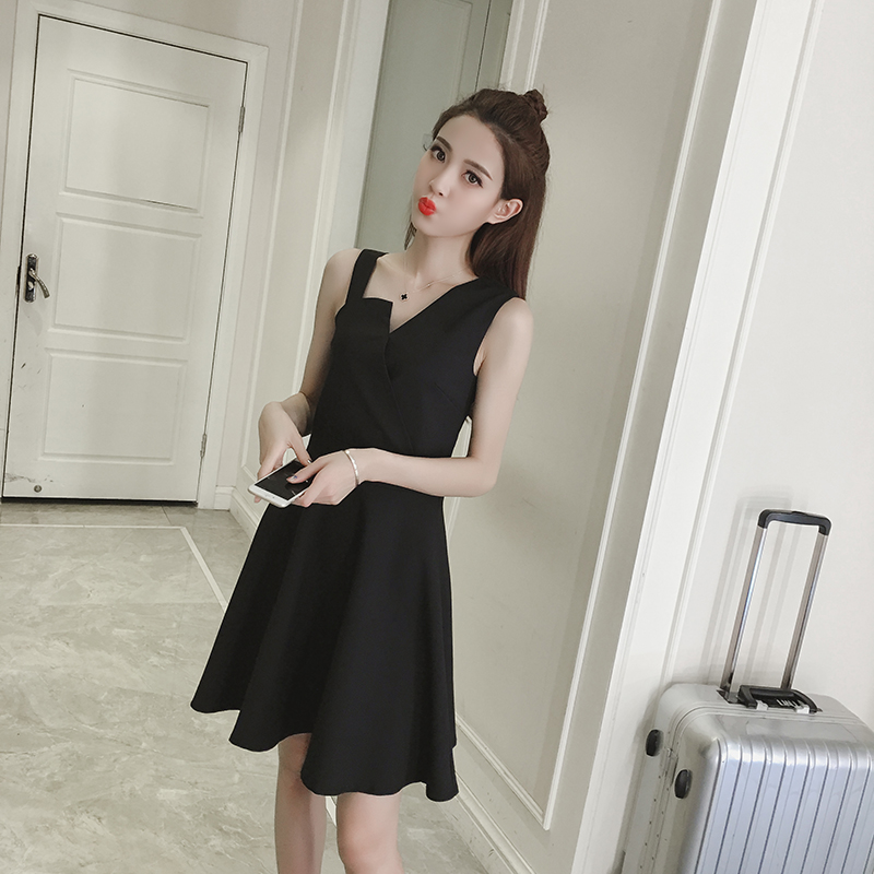 / 春夏新款女裝韓版高腰背帶小黑裙修身顯瘦無袖打底連衣裙禮服
