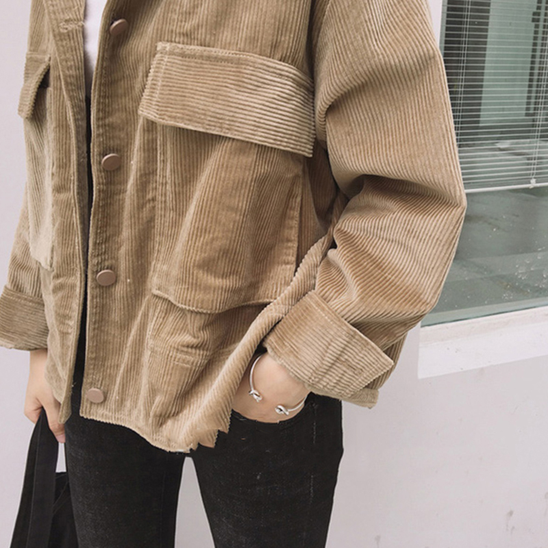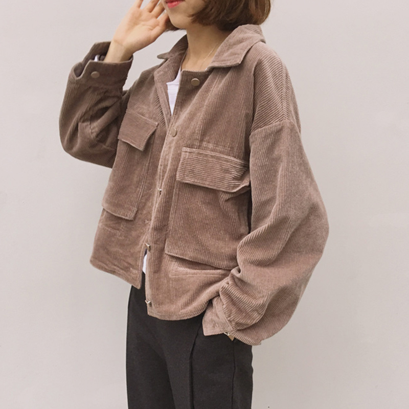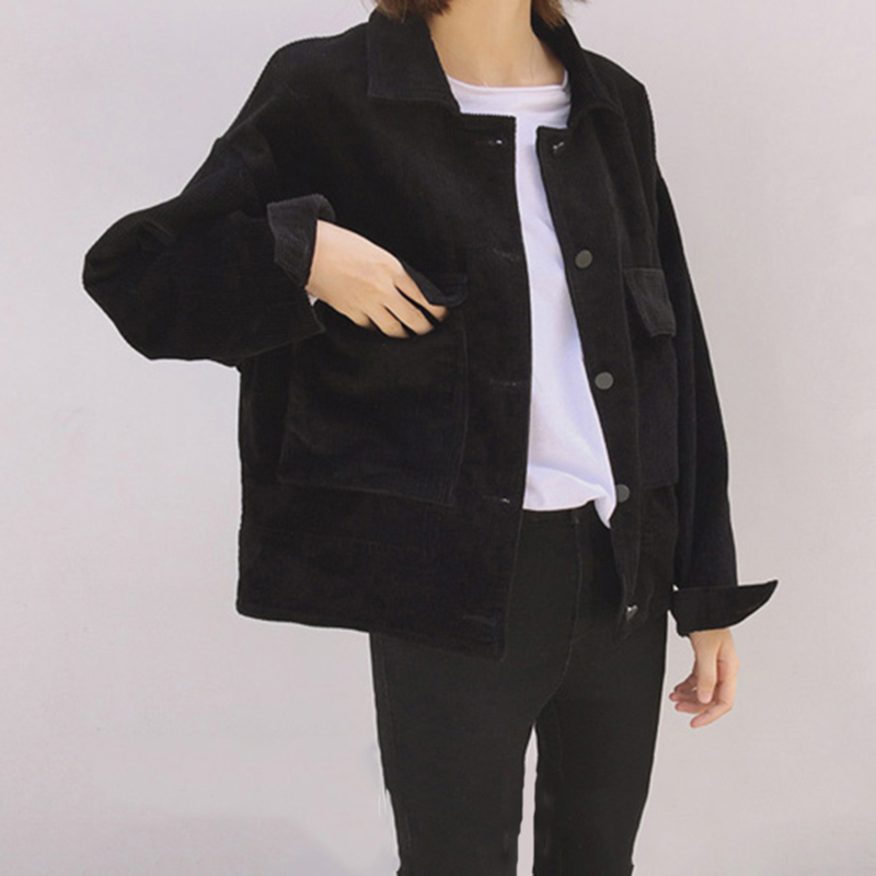 / 秋裝女2018新款復古燈芯絨外套簡約寬松長袖上衣學生時尚黑色夾克