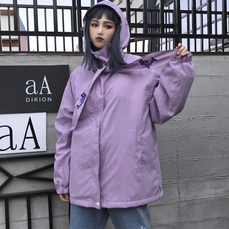 / 時尚刺繡寬松連帽棉襖2018冬季女裝新款學生中長款外套休閑棉衣服