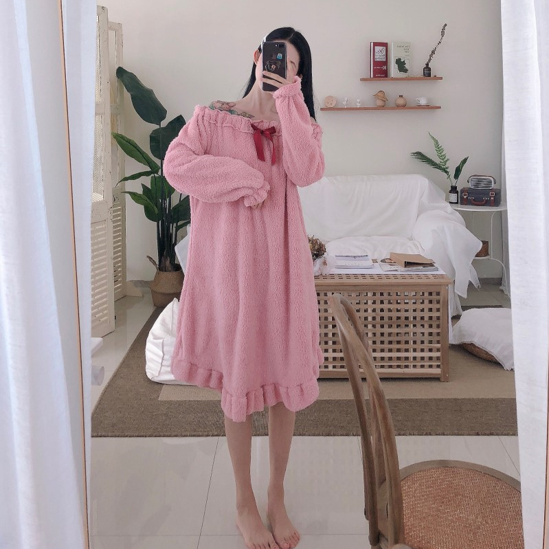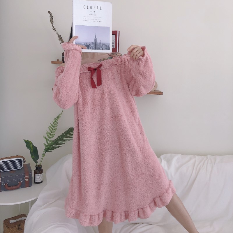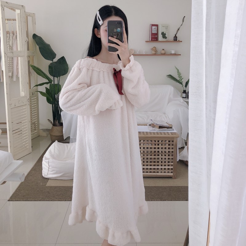 2018秋冬新款韓版甜美簡約時尚chic學生百搭蝴蝶結睡裙睡衣家居服