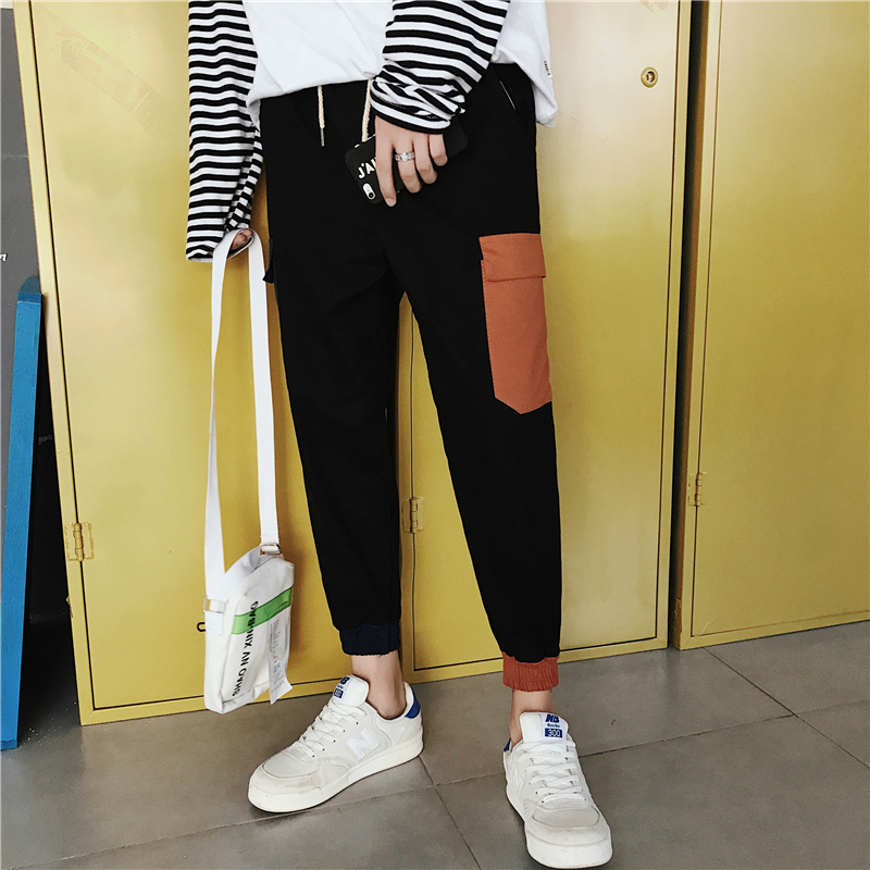 / 新款褲子男韓版潮流九分褲秋季休閑褲哈倫褲小腳褲男褲撞色束腳褲