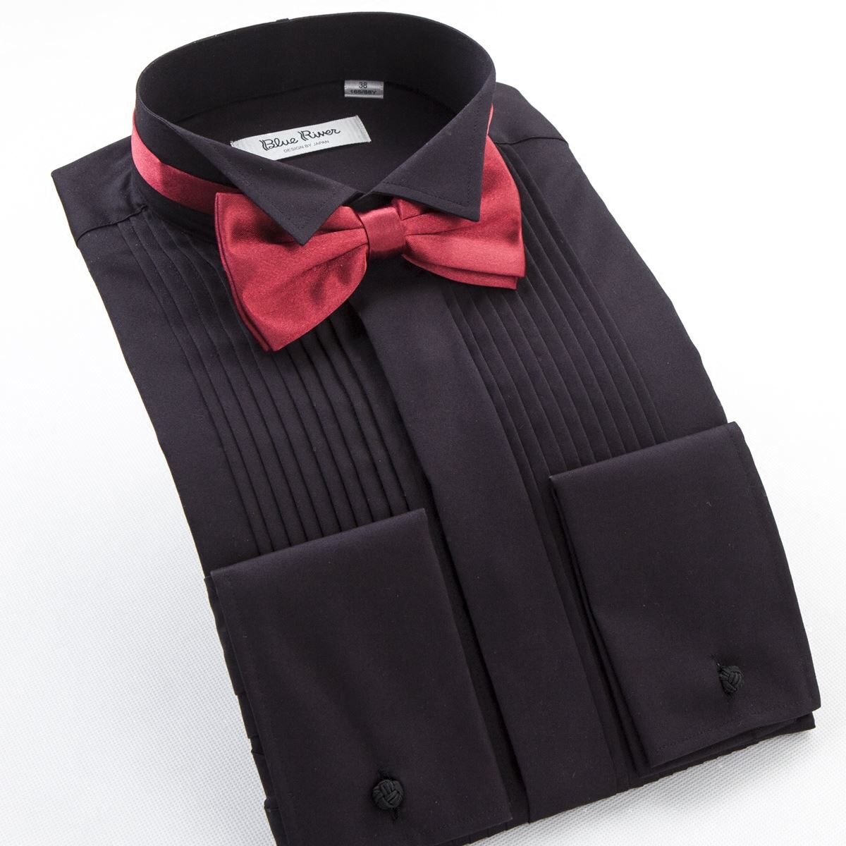 / 黑色演出襯衫禮服燕子領結新郎結婚禮服高支棉男士長袖袖扣白襯衣