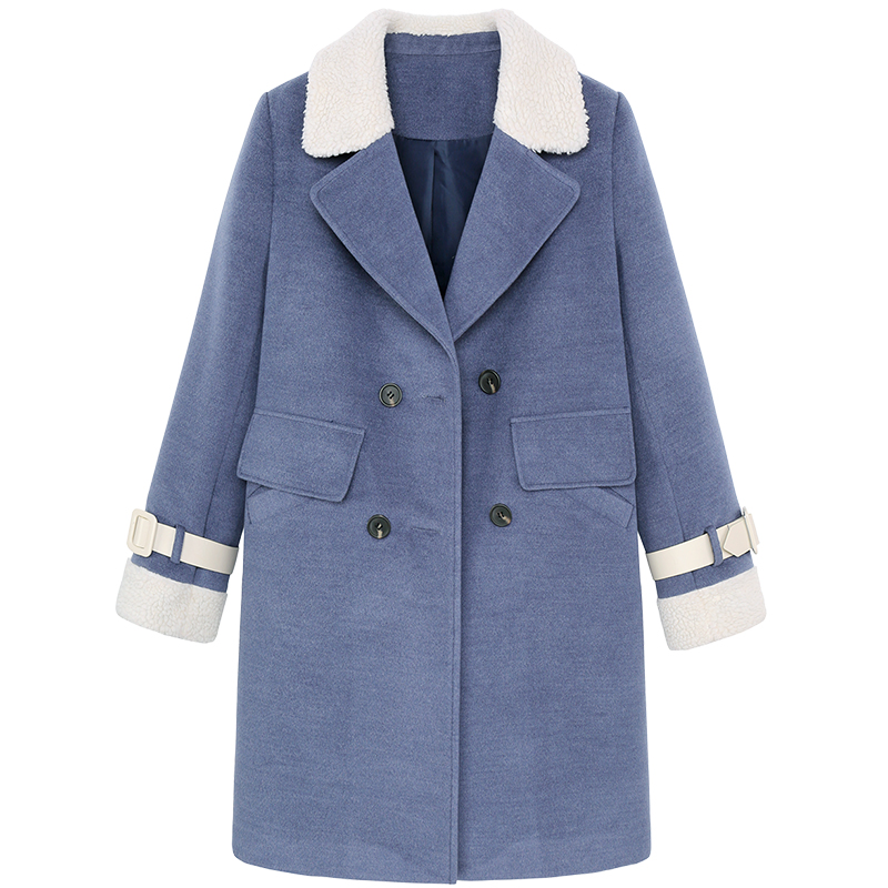 MG小象復古毛呢外套女冬季新款中長款寬松羊羔毛拼接學生呢子大衣