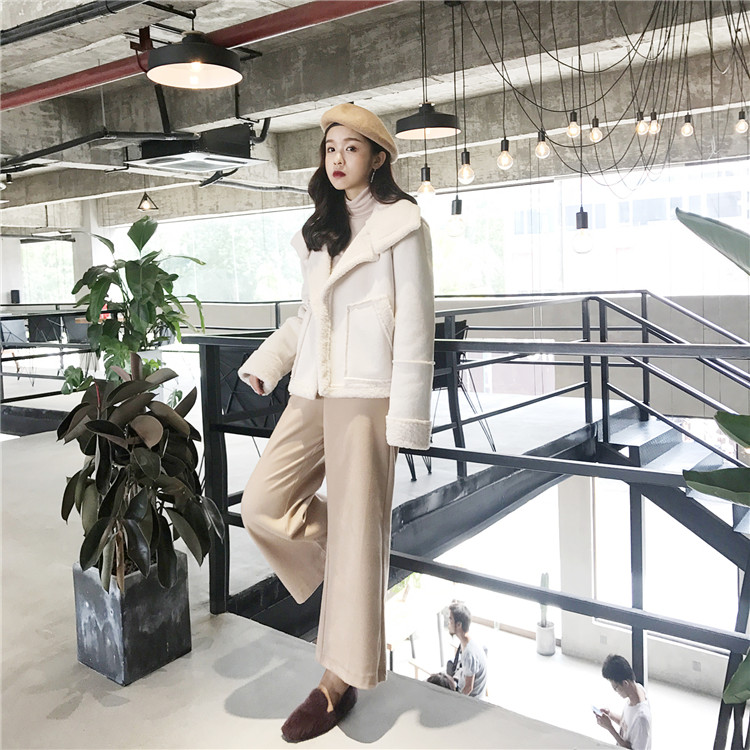 / 復古溫柔百搭慵懶西服領短款加厚保暖羊羔毛開衫外套女2018新款潮