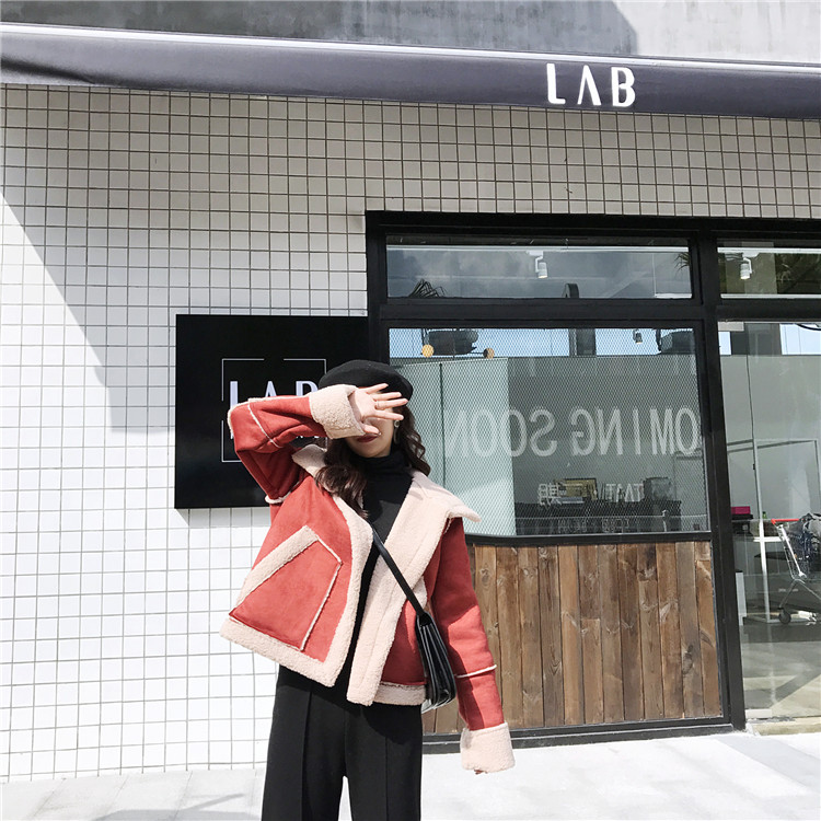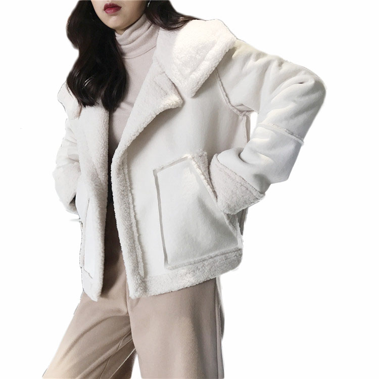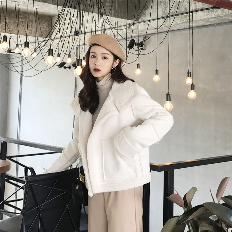 復古溫柔百搭慵懶西服領短款加厚保暖羊羔毛開衫外套女2018新款潮