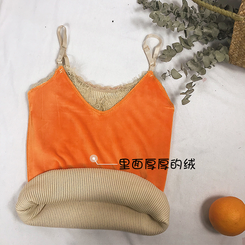 加絨保暖蕾絲打底衫秋冬裝2018新款韓版氣質修身黑色顯瘦吊帶背心