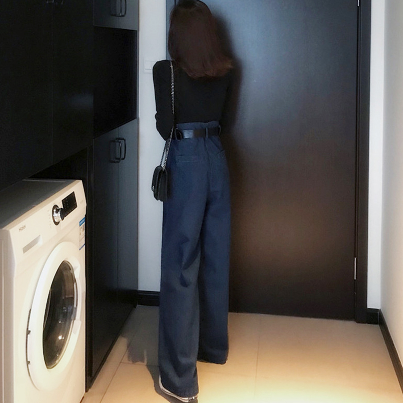 / 時尚直筒闊腿牛仔褲秋裝女2018新款復古港味高腰寬松拖地長褲子潮