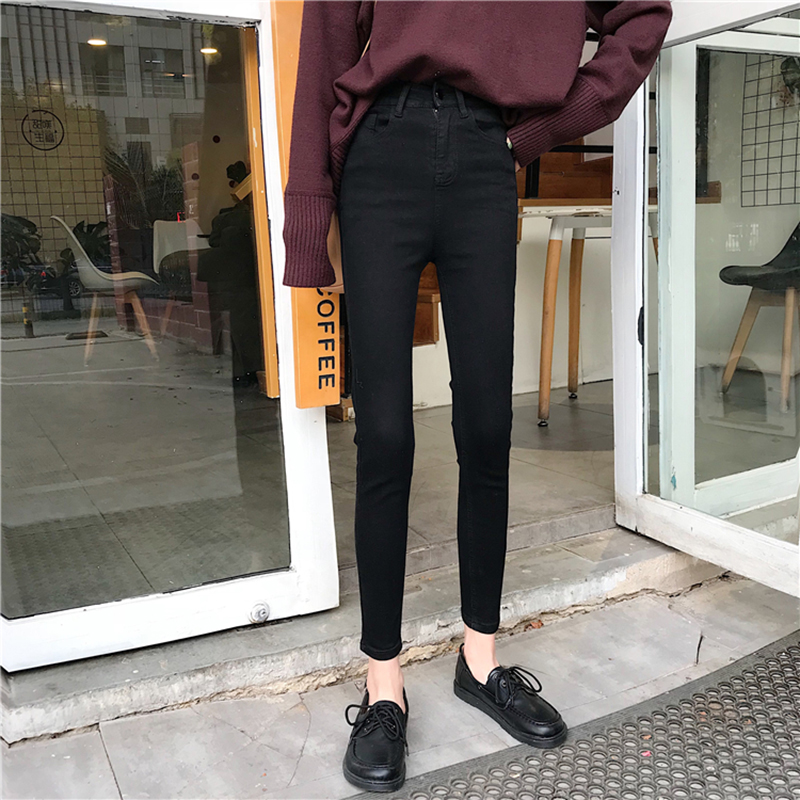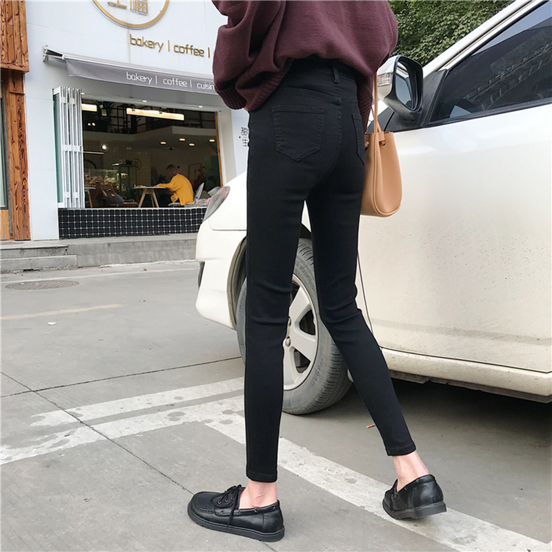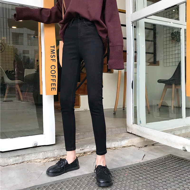 chic黑色小腳褲秋冬2018新款韓版女裝高腰修身顯瘦九分鉛筆牛仔褲