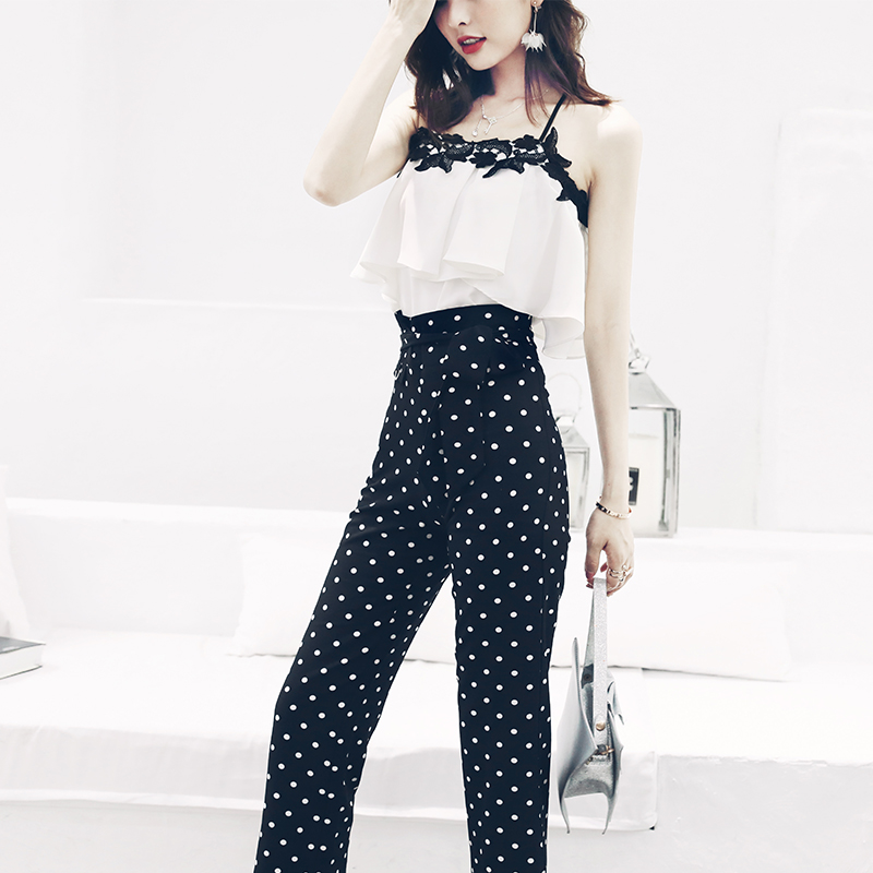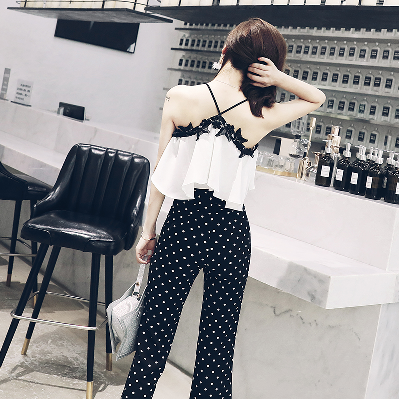 / 歐洲站冷淡風名媛氣質時髦網紅套裝2018新款吊帶上衣時尚兩件套