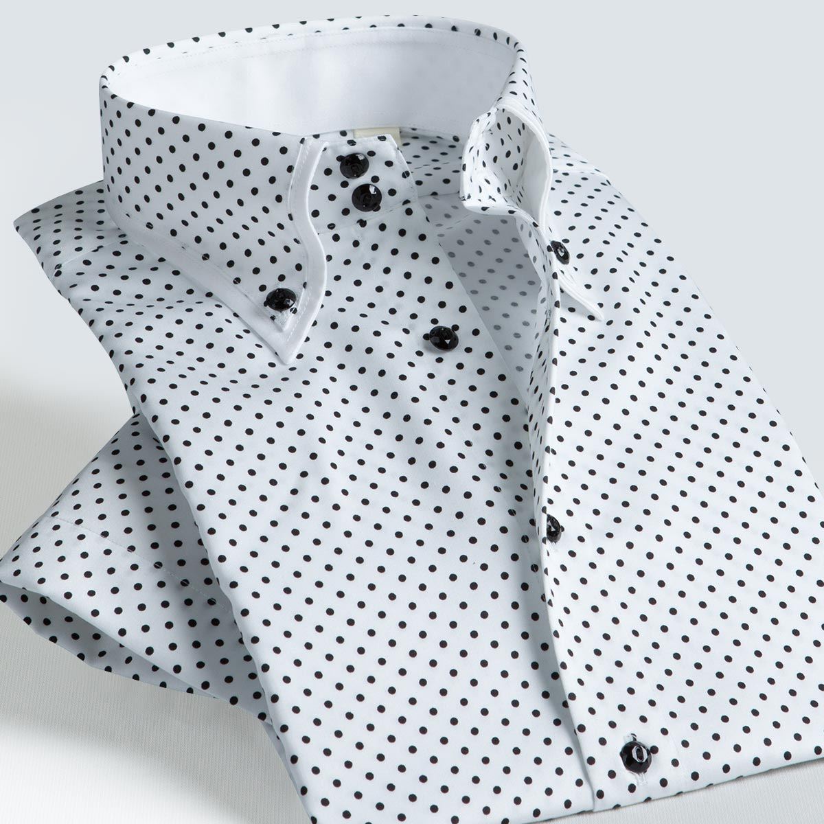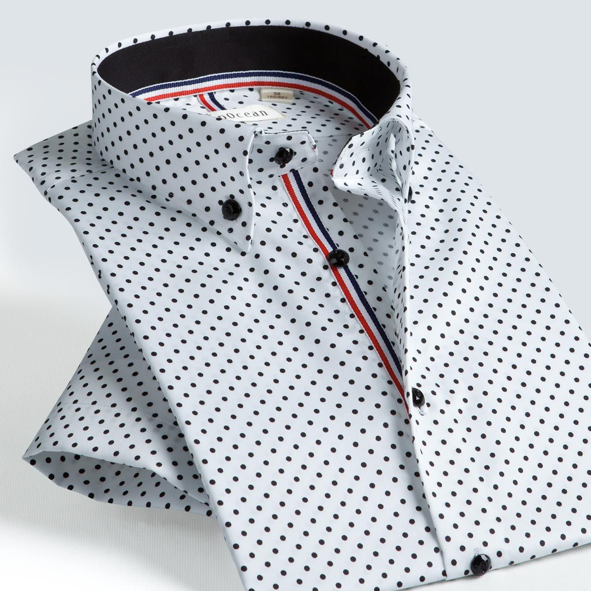 / 男士短袖襯衫黑白波點絲光棉韓版修身型薄款男式襯衣夏季免燙男裝