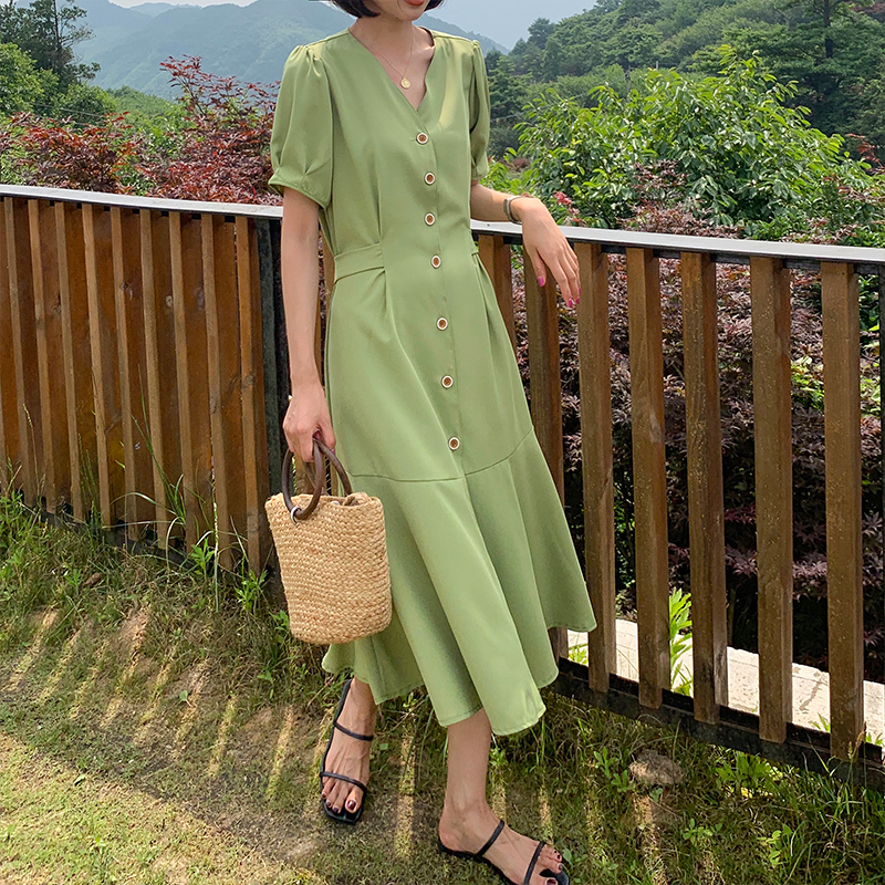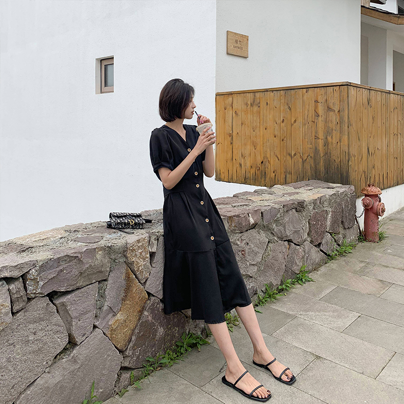 裙子長度露出一截小腿部分看上去顯瘦又高挑