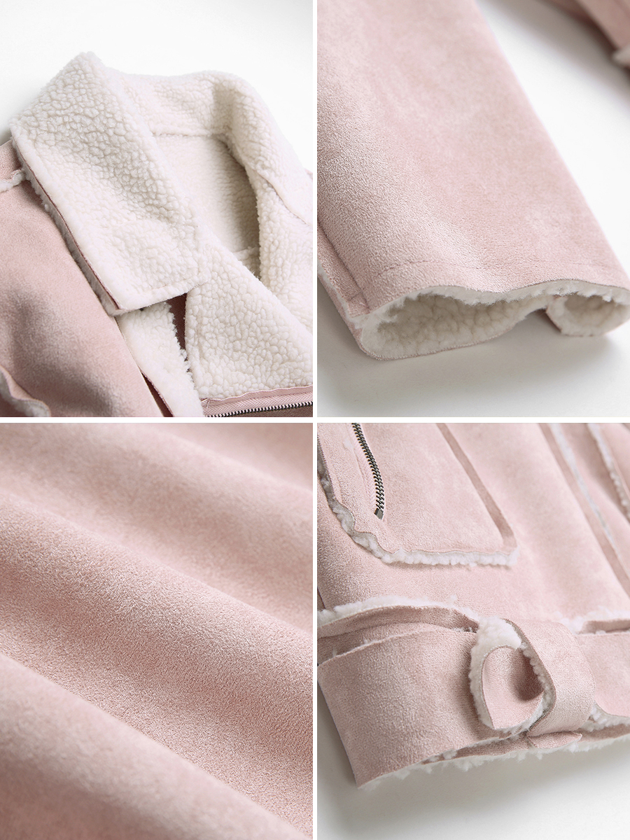 MG小象冬季毛呢外套女寬松學生2018新款粉色短款羊羔毛呢子大衣潮