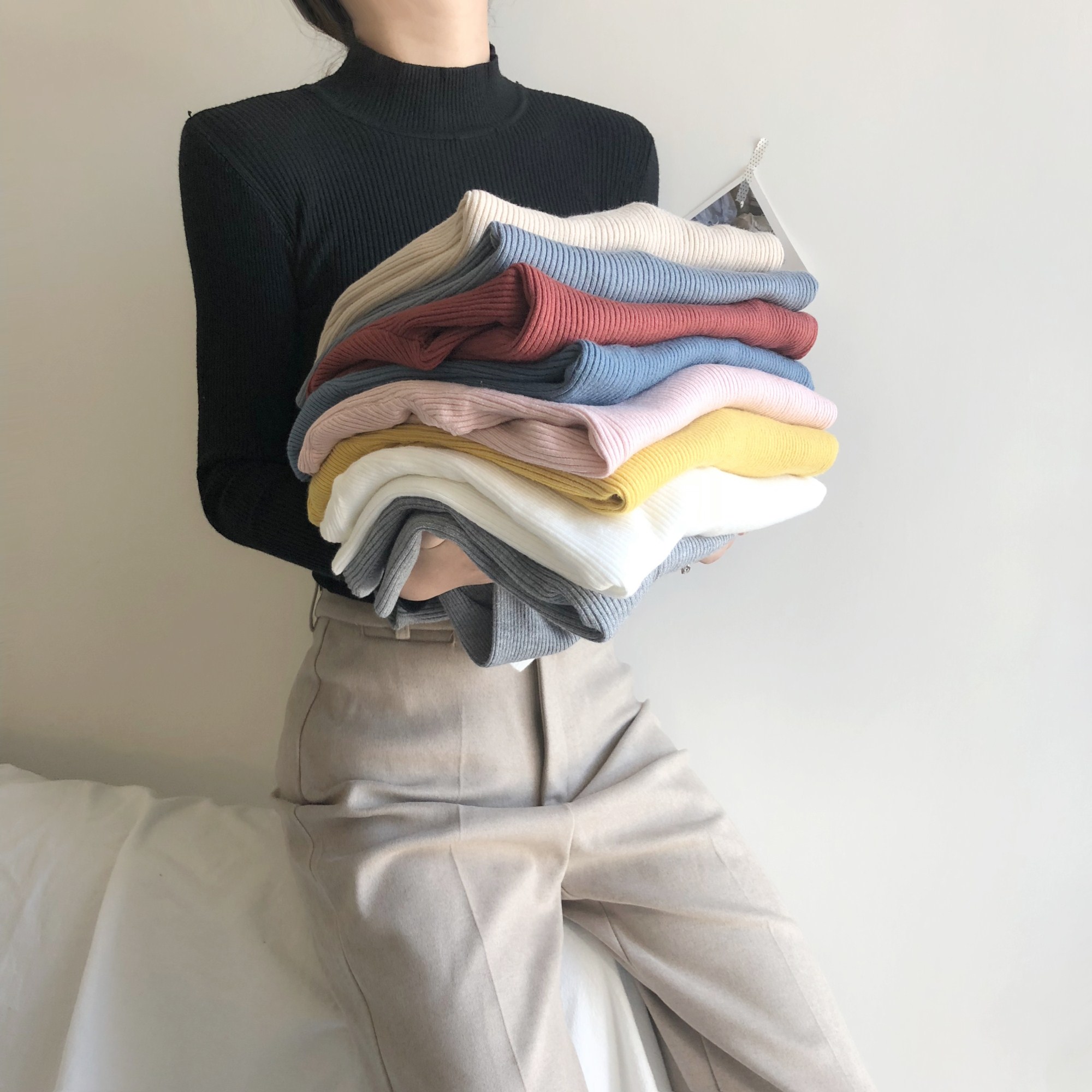 韓版秋冬基礎款慵懶風毛衣女套頭半高領針織打底衫內搭長袖上衣潮