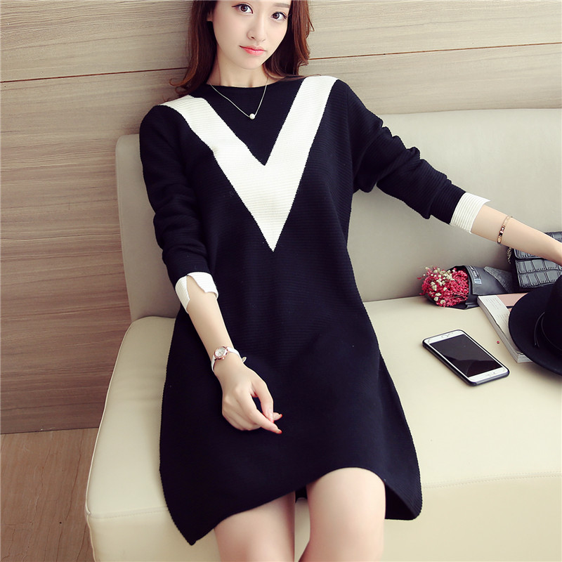 秋韓版寬松中長款長袖毛衣女套頭針織衫連衣裙女裝冬裝新款潮